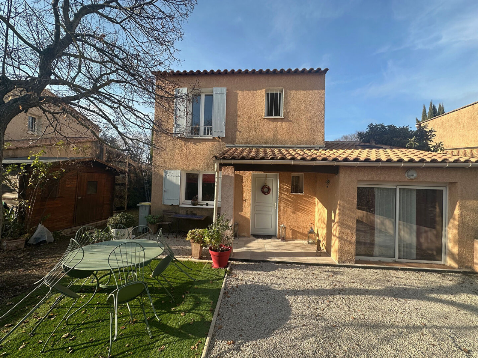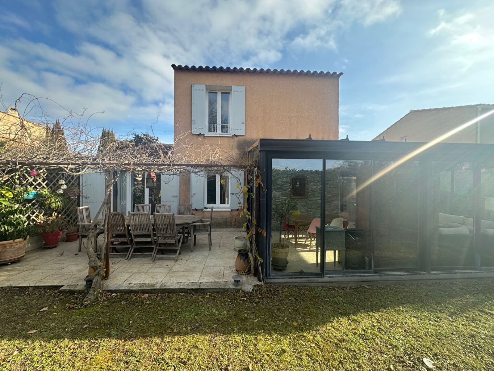 Votre Agence Aix Puyricard Immobilier vous présente cette Maison T5 d'environ 124 m2 ( véranda incluse) située au calme dans une résidence sécurisée à Puyricard, sur une parcelle de 315 m2. Située à deux pas des arrêts de bus et proche des commodités, cette maison allie tranquillité et accessibilité. Elle se compose comme suit : En RDC : une cuisine récente indépendante( pouvant être aisément ouverte sur le séjour) un toilette, un séjour avec espace bureau et mezzanine , une chambre avec coin salle d'eau et buanderie. Une grande véranda d'environ 28 m2 permet de disposer d'un grand espace de vie supplémentaire. A l'étage: 3 chambres, une salle d'eau avec WC et un espace rangement. Un abri de jardin permet également un stockage supplémentaire. DPE D Prix hors honoraires 500 000 € Christine PAURIOL 04 .88.41.35.18 RSAC 424739852 A visiter sans tarder !