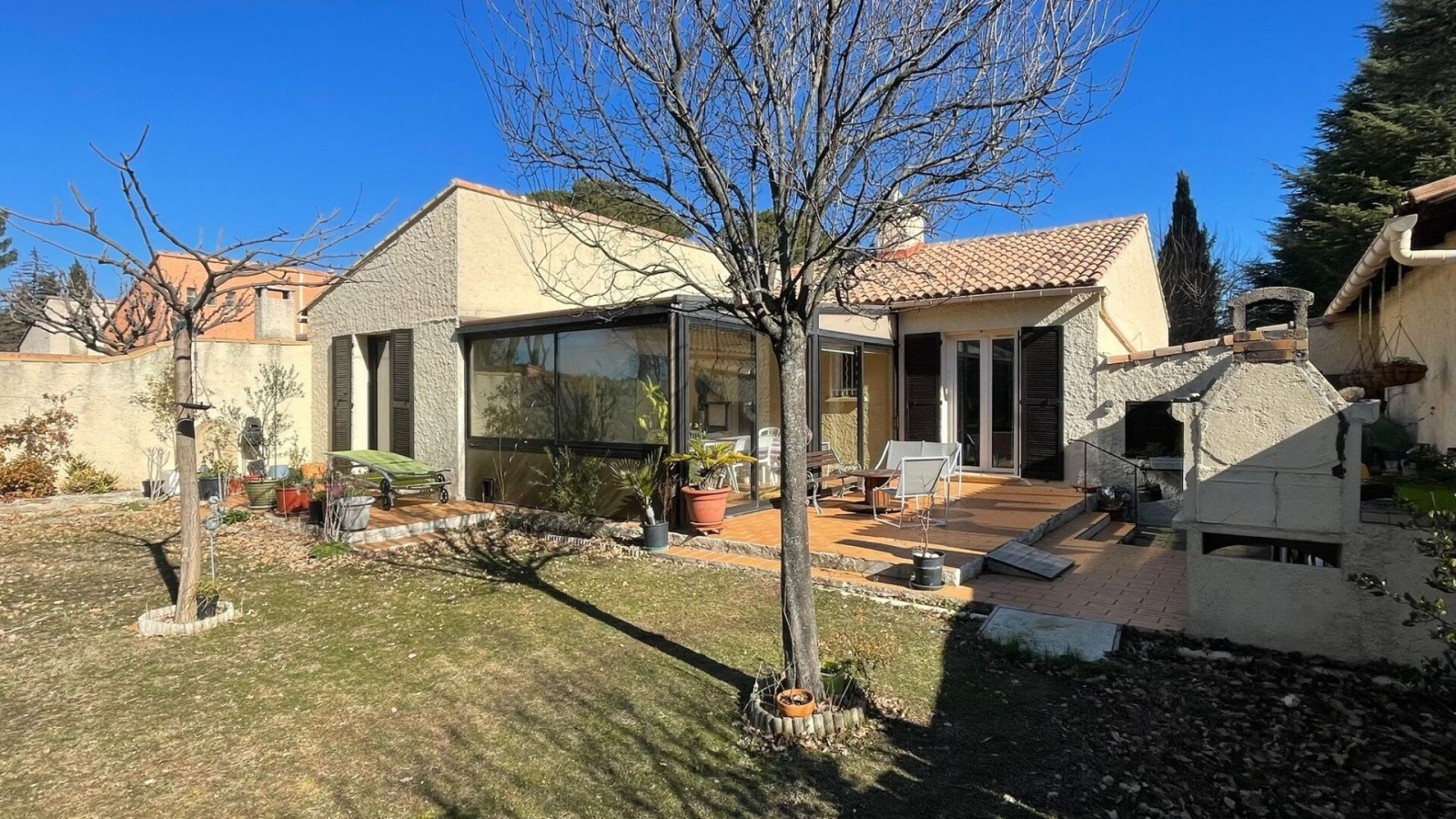 EN EXCLUSIVITÉ Votre Agence AIX-PUYRICARD-IMMOBILIER vous propose à la vente sur PUYRICARD- Au calme, avec vue dégagée. Idéalement située, jolie villa de plain pied T4/5 de 91.64 m² + une véranda de 21.42 m², un abri atelier de 14 m², sur une belle parcelle de terrain de 836 m² . Elle offre une entrée, un cellier , une cuisine indépendante, un beau séjour ouvert sur véranda et jardin, 3 chambres , une salle d'eau et un toilette indépendant Abri (buanderie et atelier) garage et place de parking privative en extérieur. chauffage gaz, double vitrage, arrosage automatique, eau du canal de Provence Bon état général DPE D katia Mazzalovo AC RCS 525038428 Copropriété de 221 lots charges annuelles 600 € Prix hors hors honoraires 580 000 € L'état des risques et pollutions pour ce bien est consultable sur le site www.georisques.gouv.fr