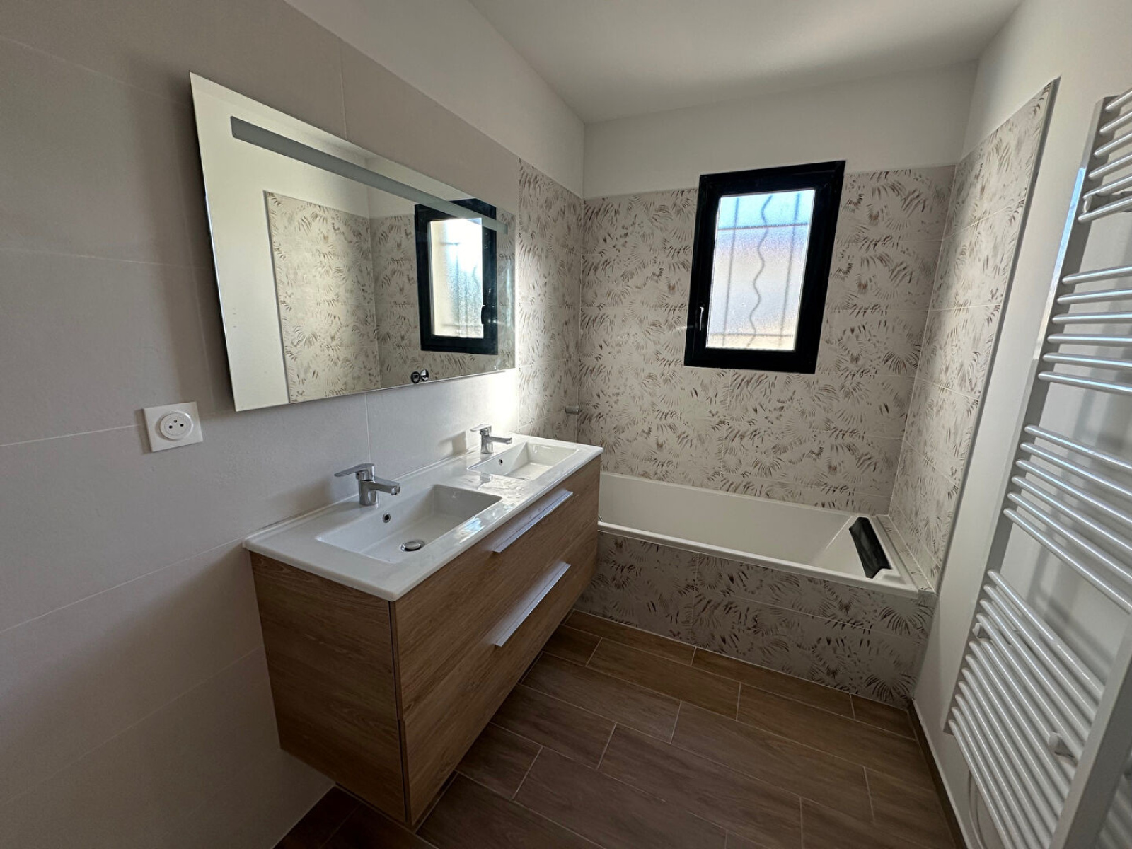 Votre agence Aix Puyricard Immobilier , vous propose, à Venelles, au calme, cette Villa T4 neuve, exposée sud, mitoyenne ( mitoyenneté décalée) de 117 m2, sur une parcelle totale de 765 m2 avec jouissance exclusive de 321 m2. Elle se compose en rez-de-chaussée d'une belle pièce de vie avec cuisine ouverte, buanderie et WC. A l'étage, vous trouverez une suite parentale avec sa salle d'eau , 2 chambres avec aménagement placard, une salle de bains et un WC indépendant. très belles prestations: menuiseries double-vitrage alu et PVC, volets roulants électriques, alarme, domotique, climatisation réversible gainable, sèches-serviettes dans les salles de bains, WC suspendus, panneau solaires, Livrée hors cuisine... Eau du canal de Provence, compteur d'arrosage, terrain piscinable . Frais de Notaire réduits Commerces et bus à pieds Prix hors honoraires 545 000 € Christine PAURIOL- 06 18 84 39 30 RSAC 424739852