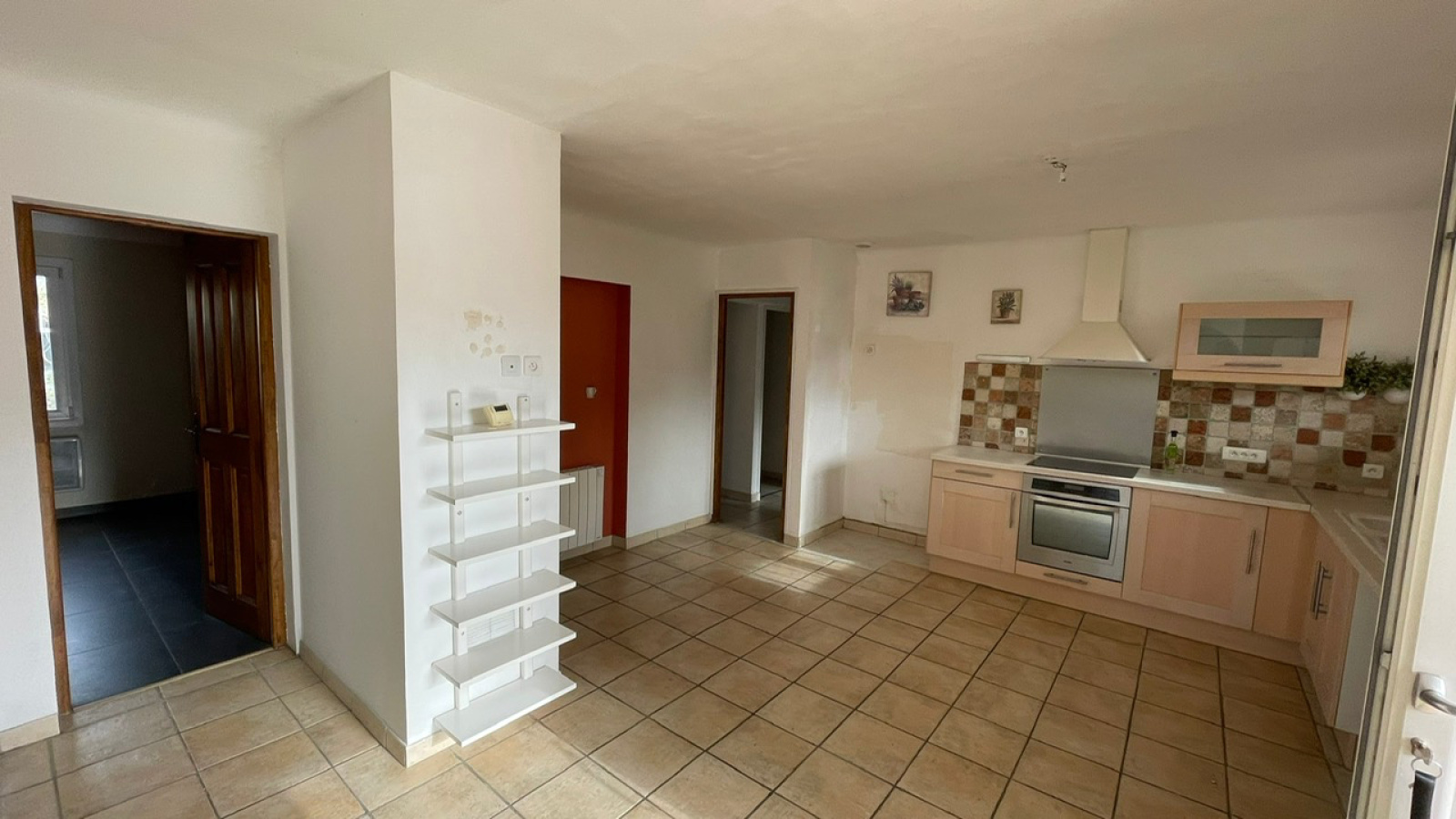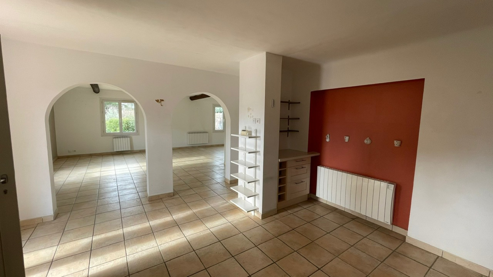 Aix Puyricard Immobilier vous présente en exclusivité cette villa individuelle T4 , de plain-pied de 110 m2 avec très grand garage attenant sur parcelle de terrain de 1378 m2 ( piscinable), proche des bus et commodités. Elle se compose ainsi: vaste séjour d'environ 60 m2 avec cuisine ouverte, 3 chambres, WC séparé, salle de bains et cellier. Un très grand garage attenant de 36 m2 permet de l'aménager éventuellement en suite parentale ou T2. Chauffage électrique, double-vitrage, volets bois. Possibilité d'agrandissement ou de surélévation (plancher béton) DPE D- B Prix hors honoraires: 625 000 € Christine PAURIOL 06 18 84 39 30- 04 88 41 35 18 RSAC 424739852