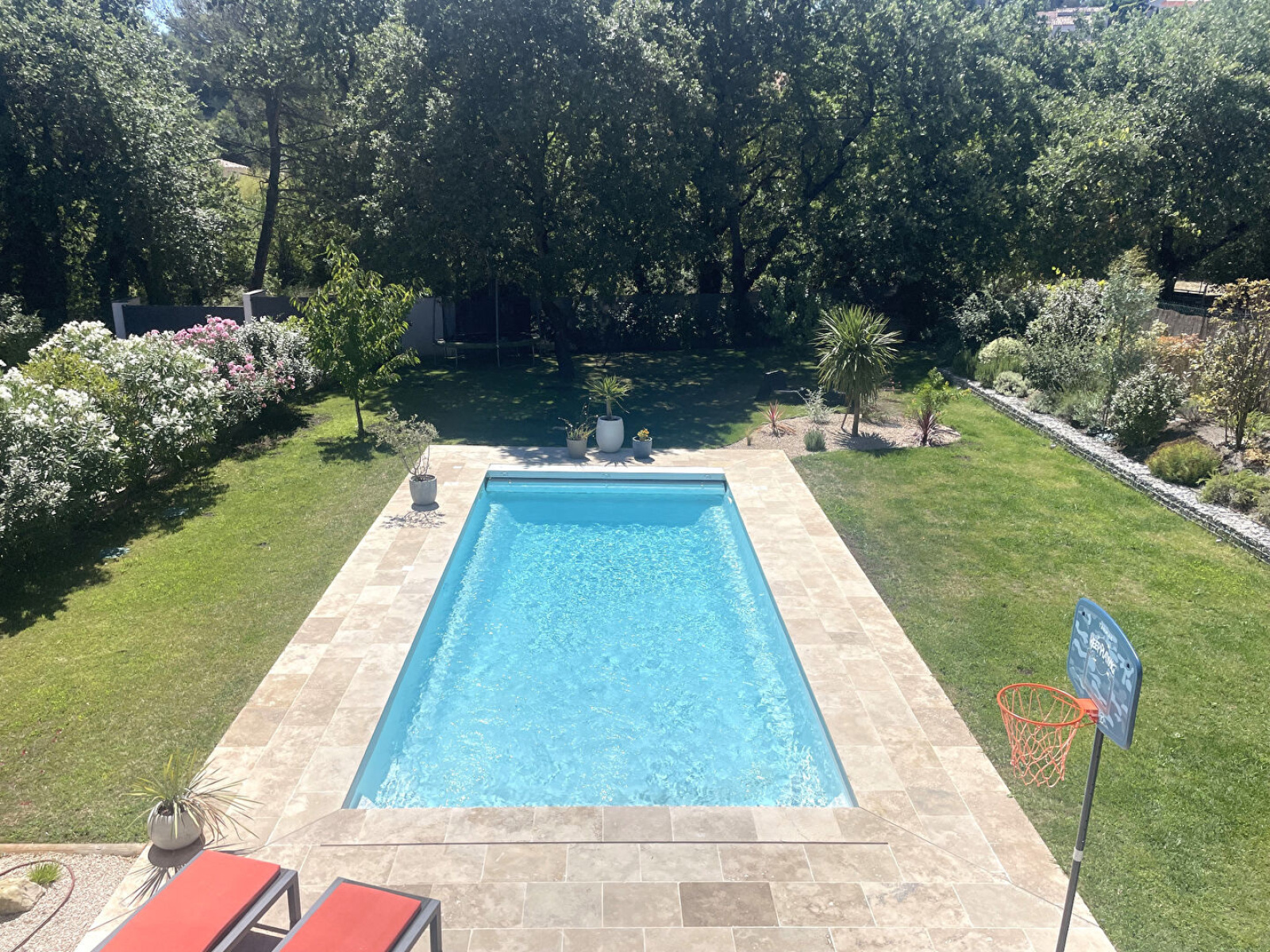 Venelles - Au calme -10 minutes à pied du centre village. Prestations de qualité pour cette villa récente T5 d'env.150 m² sur parcelle de terrain de 1186 m² avec une grande cave , une piscine, un garage et un abri voiture. Elle offre en Rdc un très bel espace de vie lumineux de 60 m² avec, une entrée, et une cuisine aménagée et équipée ouverte sur un salon séjour . Une chambre parentale avec salle d'eau et dressing , une deuxième chambre avec salle d'eau, un wc independant et une buanderie. A l'étage, deux chambres avec rangements, une salle de bains, toilettes, un dégagement bureau. Chauffage par le sol (plancher chauffant et rafraichissant), cheminée, volets roulants,. Grand garage independant et grande cave Bel aménagement extérieur avec piscine , grande terrasse et pergola bioclimatique A découvrir. DPE B Prix hors honoraires 955 000 € katia Mazzalovo AC RCS 525038428 L'état des risques et pollutions pour ce bien est consultable sur le site www.georisques.gouv.fr