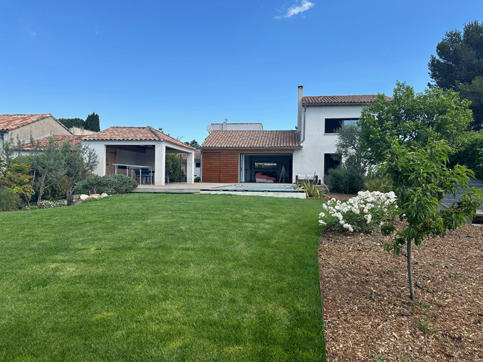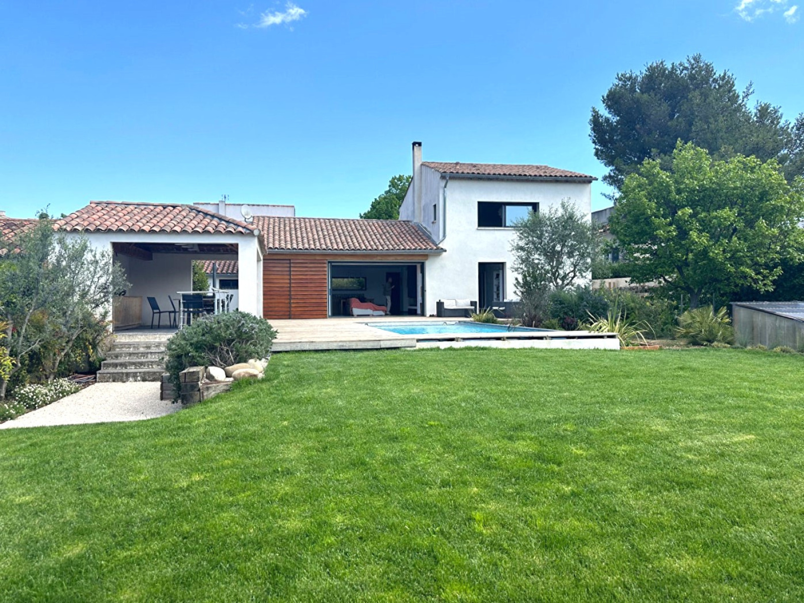 Aix Puyricard Immobilier vous propose EN CO-EXCLUSIVITE cette villa familiale individuelle , au coeur du village, de 146 m2 sur parcelle de 843 m2 sur 2 niveaux offrant un cadre de vie idéal à deux pas des commodités tout en étant au calme. Le rez de chaussée vous accueille avec un spacieux séjour lumineux donnant sur la terrasse avec piscine, avec cuisine ouverte entièrement équipée et cellier attenant. Le coin nuit propose 3 chambres avec une salle de bains avec WC. A l'étage, vous bénéficierez de 2 chambres supplémentaires, chacune disposant de leur propre salle d'eau avec WC . A l'extérieur, vous serez séduits par un magnifique jardin, une piscine et son pool house ainsi qu un garage. Double-vitrage alu ( galandage sur les pièces du bas) volets roulants électriques DPE C Prix de vente 950000 € FAI Un véritable havre de paix à découvrir sans tarder!!! Christine PAURIOL - RSAC RSAC 424739852