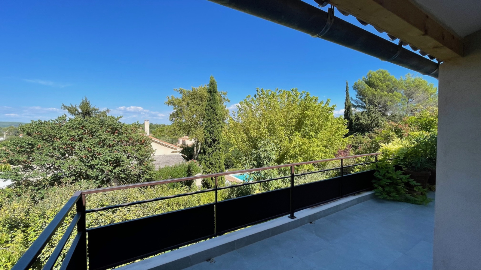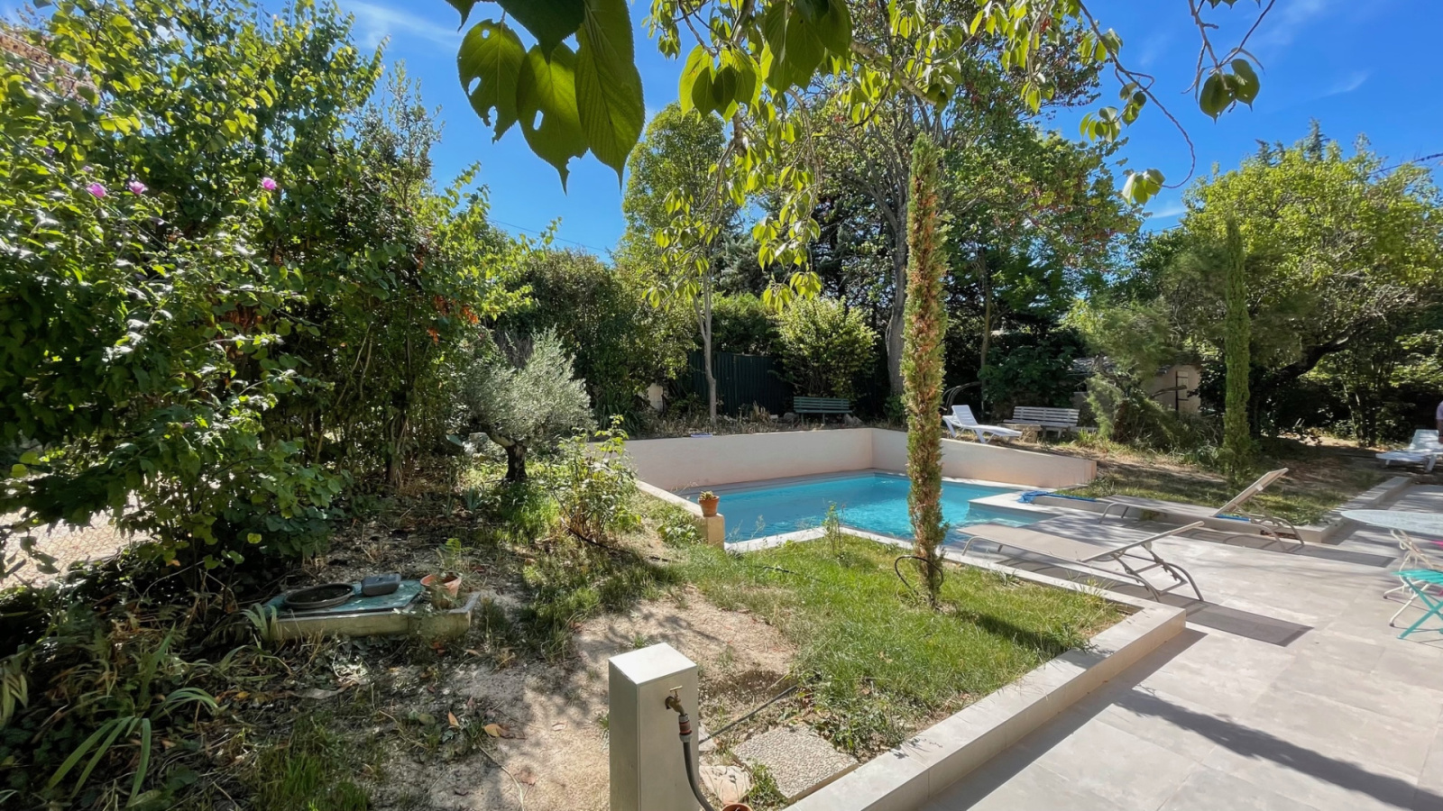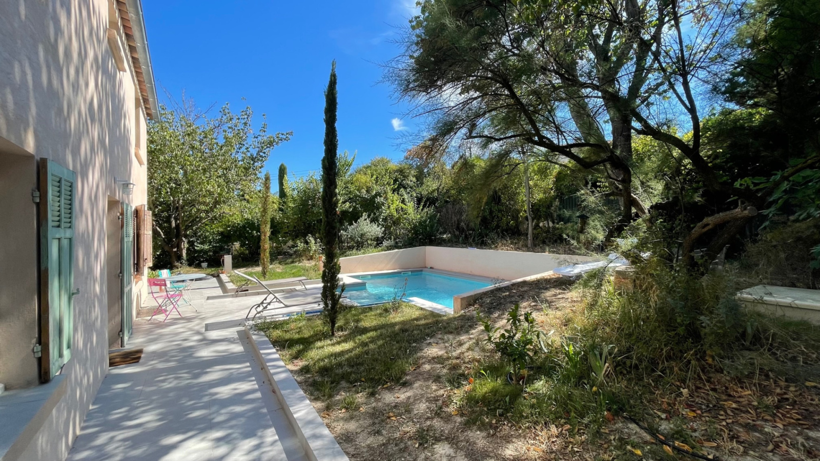 Votre Agence Aix-Puyricard vous propose en EXCLUSIVITE cette jolie villa rénovée de 110 m² environ sur magnifique terrain arboré de 850 m² avec piscine et garage indépendant. Elle comprend une entrée, une pièce à vivre avec cuisine US de 47 M², 2 chambres de plain-pied avec salle d'eau et WC, et à l'étage 2 chambres ouvertes sur une terrasse de 30 m², salle de bains et WC. Calme, prestations actuelles, volumes et extérieur au charme incomparable rendent cette maison unique sur son secteur.