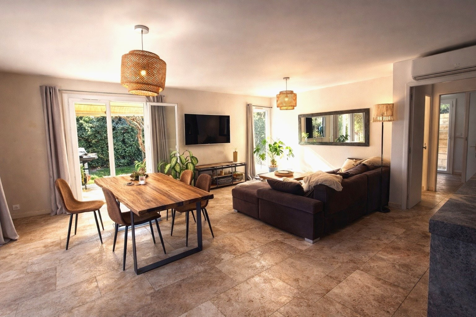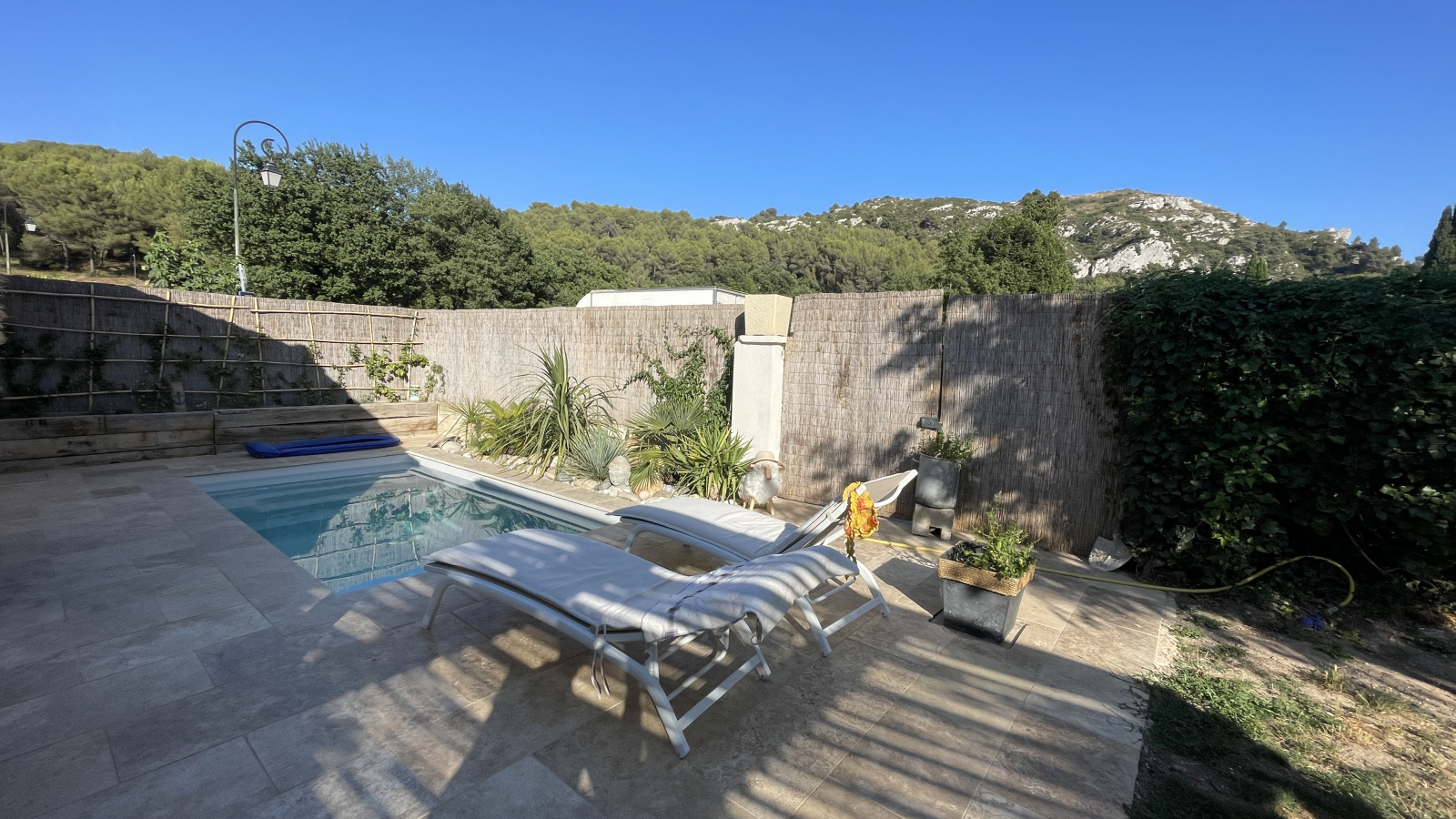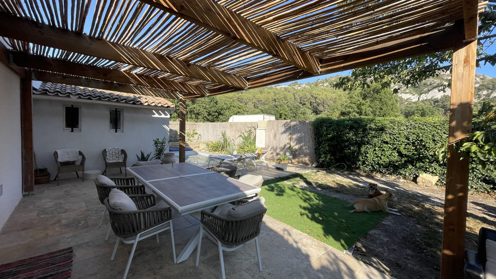 Votre agence Aix Puyricard Immobilier vous propose à la vente, sur Meyrargues, au calme, cette charmante villa T4 de plain-pied entièrement rénovée, implantée sur une parcelle de 422 m² avec piscine, garage et cave.