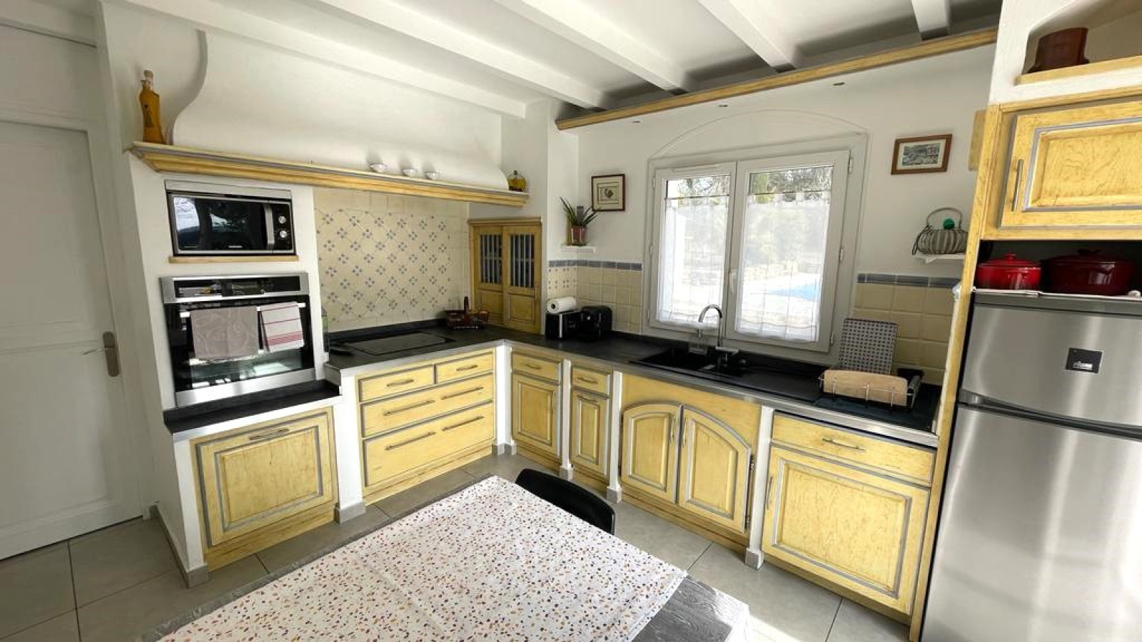 En Exclusivité. Votre agence Aix-Puyricard immobilier vous propose à la vente sur Lambesc au calme a 1km du village cette jolie villa T6 env.145 m² + 20 m² de garage buanderie sur 8820 m² de parcelle arborée avec piscine, abris voitures et oliveraie. Elle offre en rez de chaussée une entrée, un salon séjour de 36 m² , une cuisine aménagée et équipée de 14 m², un cellier, trois chambres, une salle d'eau et un wc. En étage un bureau de 20 m² et une chambre avec salle d'eau et toilettes. Accès à une grande tropézienne avec jolie vue dégagée. Garage buanderie, abris voitures, piscine, oliveraie . Climatisation, panneaux solaires, eau du canal de Provence A découvrir DPE D Prix hors honoraires 730 000 € katia Mazzalovo AC RCS 525038428 L'état des risques et pollutions pour ce bien est consultable sur le site www.georisques.gouv.fr